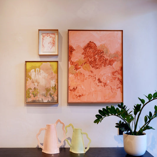 Wasserman’s work is about the gentle expansion of the self. Evoking internal landscapes by drawing from nature and work based on relationship dynamics. Exploring new spaces with a keen awareness of her own emotional and visceral response to the environment, her practice is characterised by meticulous attention to the ordinary world surrounding her. Constantly seeking distinctive visual cadences in everyday life, she translates these discoveries through her abstract perspective into her artwork. Her aim is not merely to embellish but to acknowledge the inherent beauty found in the ordinary, the mundane, and the intimately personal. In each piece, her goal is to exude a sense of generosity, as she perceives colour as inherently abundant. Aiming to capture a certain sense of effortless harmony with sufficient depth, while being undeniably influenced by her surroundings and inner landscape.