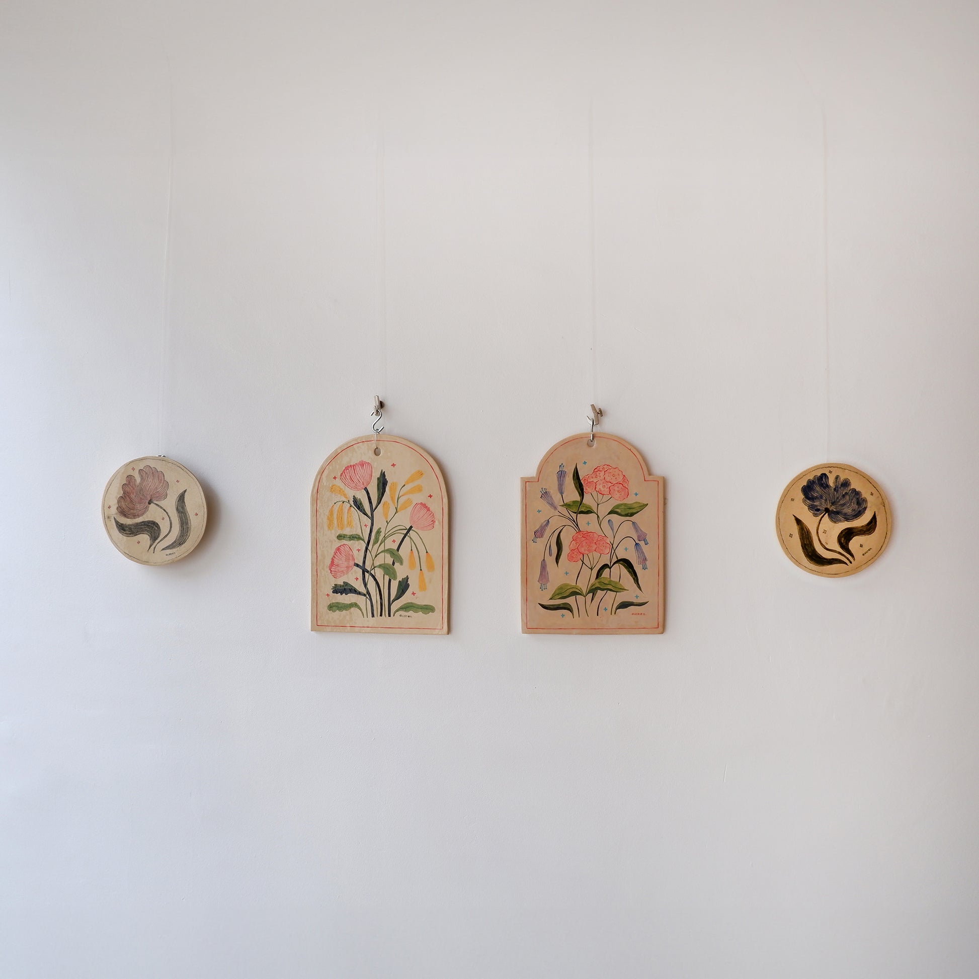 In my work, elements of symmetry, harmony and distinct contrast appear together, paired, as ever, with abounding florals. Carefully selected colours, shapes and patterns represent diversity, abundance and longevity. This show reflects, in titles and essence, what it is to have female friendships.