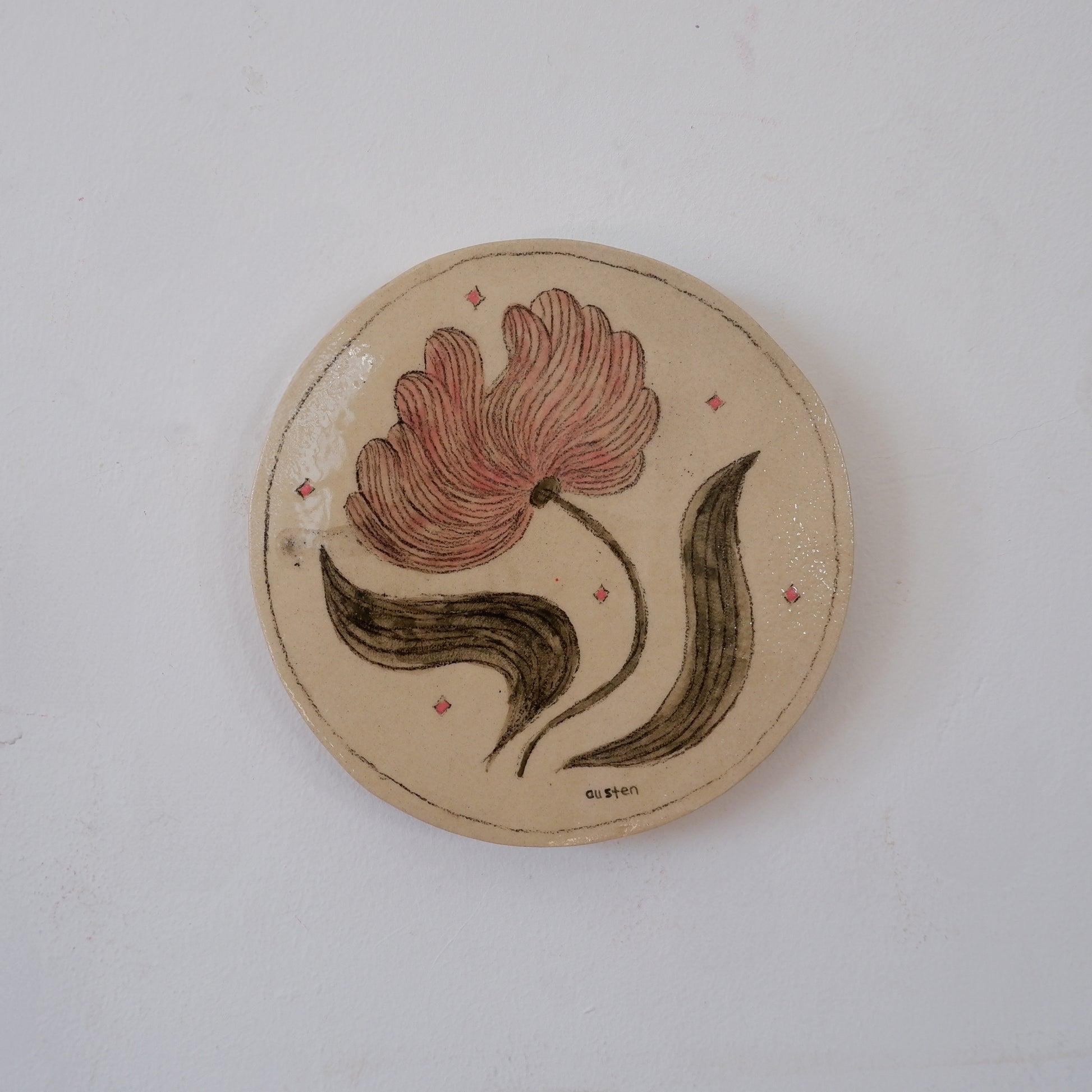 Austen's work explores illustrative realism, wordplay and principles of aestheticism. She loves to use surprising colour combinations in her works and apply her visuals to a variety of substrates. She is interested in taking a theme or a subject matter and working and re-working it and watching it evolve and change.